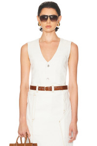 Details - Self: 100% organic cotton - Lining: 65% polyester, 35% cotton - Machine wash - Front button closure - Cut-out detail at back with adjustable back strap - Denim fabric - Item not sold as a set - Made in Italy - Our Style No. VBEC-WS98 - Manufacturer Style No. 1325DTP006448B
