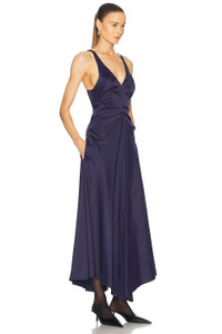 Gathered Racer Back Dress In Ink Blue
