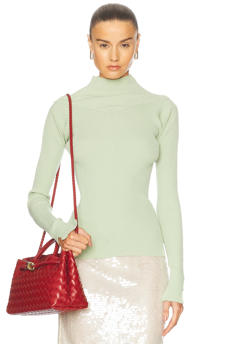 Details - 63% cotton, 34% polyamide, 3% elastane - Made in China - Dry clean only - Pull-on styling - Logo pull-tab at back center - Ribbed knit fabric with mockneck styling - Our Style No. VBEC-WS90 - Manufacturer Style No. 1125KTP006102A