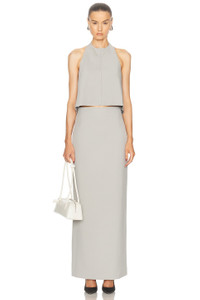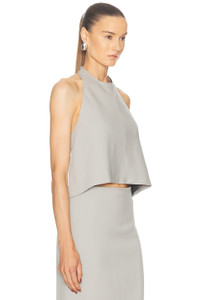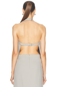 Details - Self: 100% wool - Lining: 100% viscose - Made in Slovakia - Dry clean only - Halterneck and back buckle closure - Open back design - Crepe fabric - Item not sold as a set - Our Style No. WNYF-WS119 - Manufacturer Style No. W1058R12
