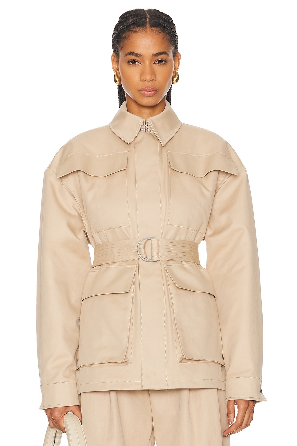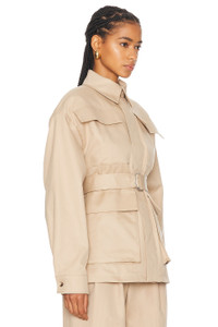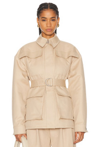 Details - Self: 100% cotton - Lining: 100% viscose - Made in Slovakia - Hand wash - Hidden two-way front zipper and snap button closure - Front cargo pockets - Padded shoulder and snap buttoned cuffs - Includes adjustable belt - Our Style No. WNYF-WO56 - Manufacturer Style No. W4069R16
