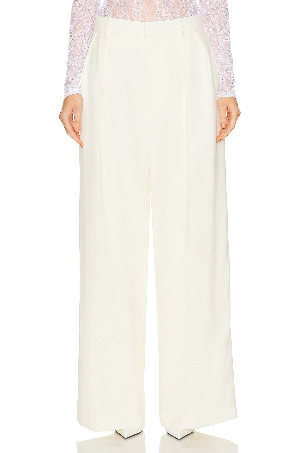 Details - Self 1: 100% virgin wool - Self 2: 100% silk - Lining: 100% cotton - Made in Slovakia - Dry clean only - Zip fly with hook and bar closure - Side slip pockets - Back welt pockets - Pleated detail - Our Style No. WNYF-WP64 - Manufacturer Style No. W2089R14W