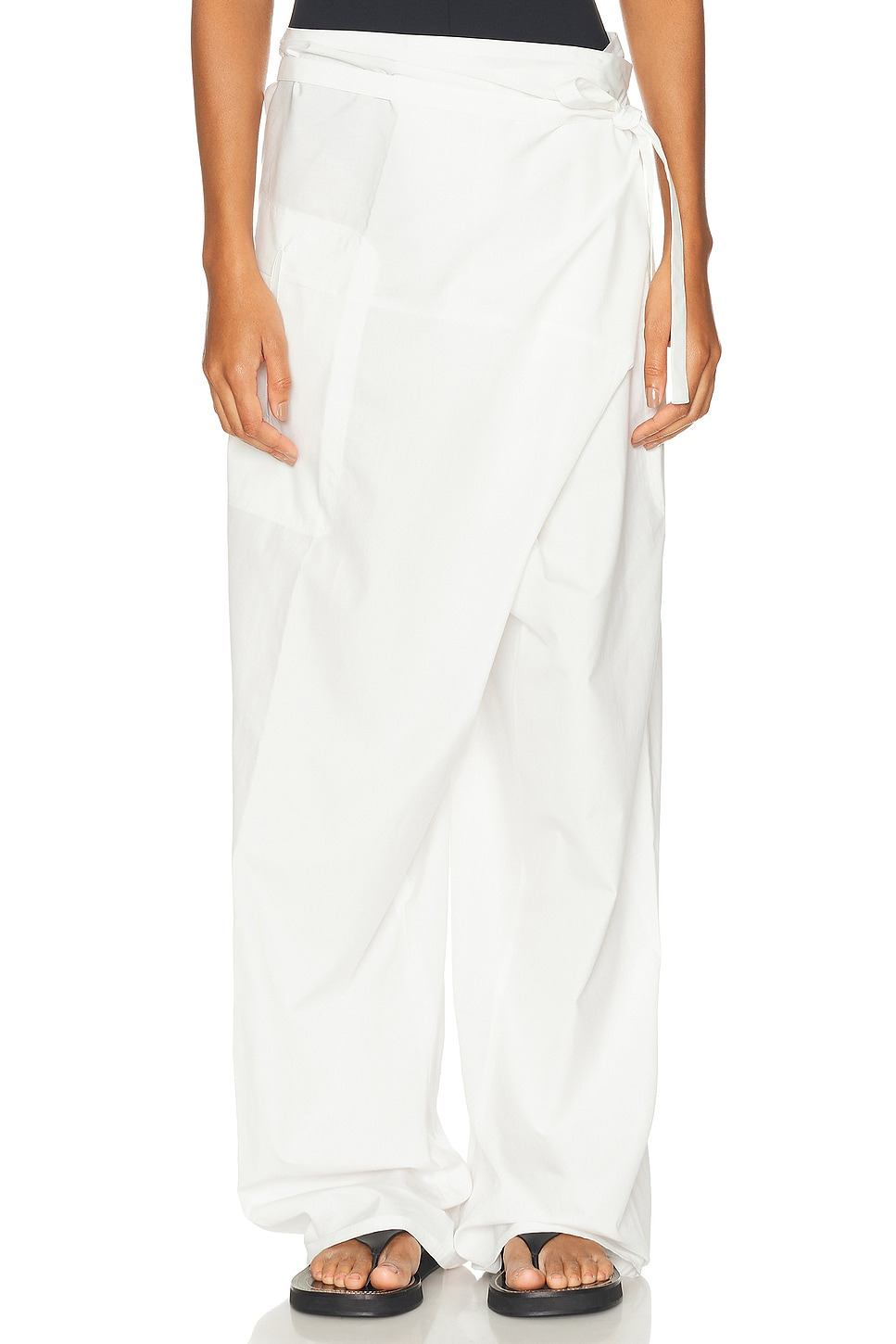 Fisherman tie-front cotton wide-leg pants Off-white