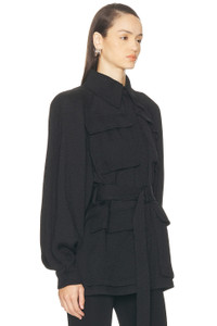 Details - 100% viscose - Dry clean only - Hidden front zipper and button snap closures - Structured padding at shoulders - 4-front flap pockets - Optional belt - Buttoned cuffs - Crepe fabric - Made in Slovak Republic - Our Style No. WNYF-WO80 - Manufacturer Style No. W6005R21CV