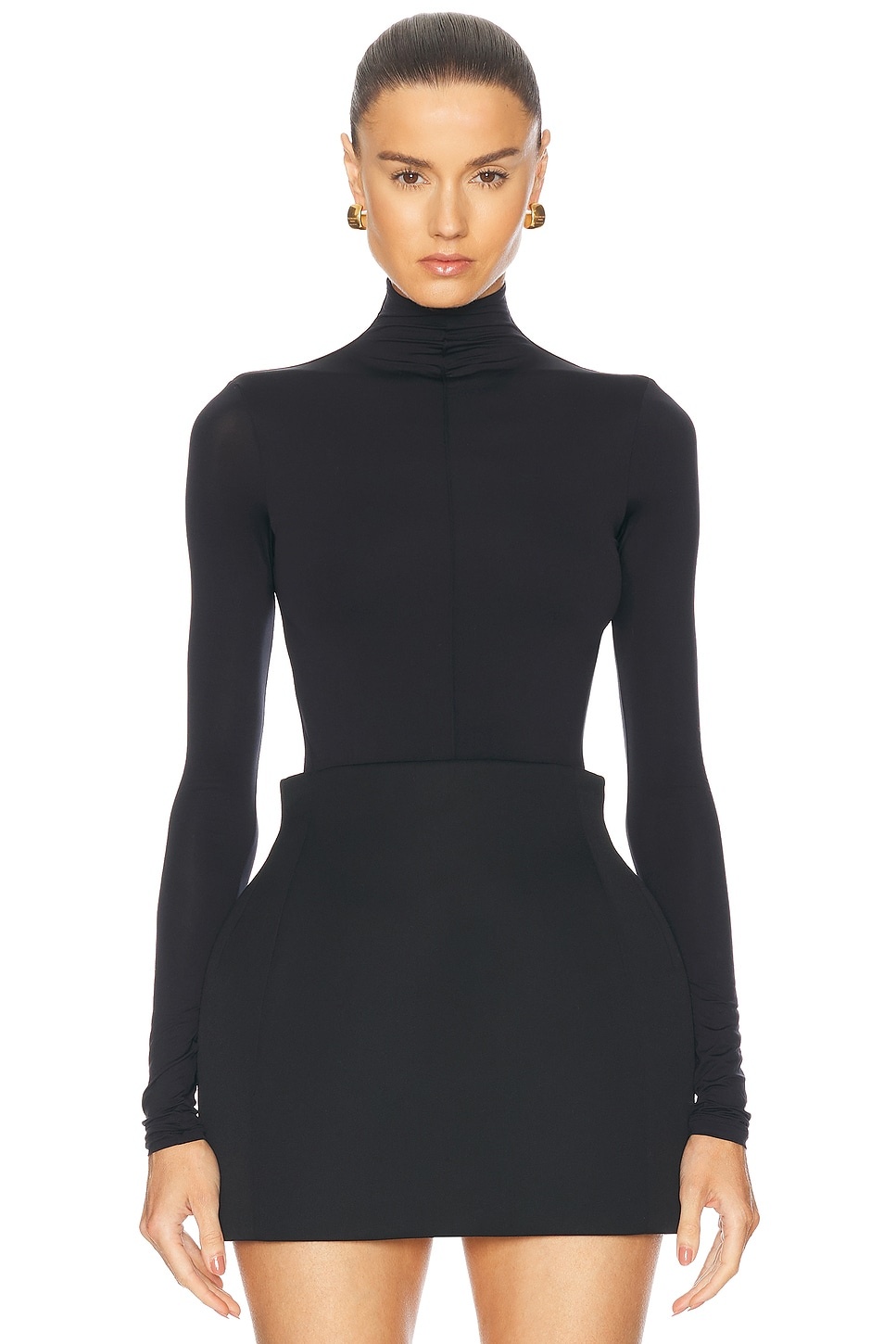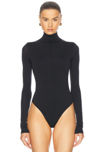 Details - 84% polyamide, 16% elastane - Made in Portugal - Machine wash - Pull-on styling with gusset button snap closure - Turtleneck design - Thong design at back - Slinky jersey fabric - Our Style No. WNYF-WS123 - Manufacturer Style No. W1086R18JE