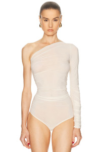 Details - 86% polyamide, 14% elastane - Made in Slovenia - Machine wash - Snap button gusset closure - One-shoulder styling - Stretch jersey textile - Ruched bodice - Garment is made with a semi-sheer fabric, undergarments can show through - Our Style No. WOLF-WS125 - Manufacturer Style No. 78332