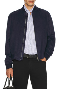 Details - Self: 100% linen - Lining: 55% silk, 45% cotton - Dry clean only - Two-way front zipper closure - Side pockets and dual interior chest pockets - Ribbed trim - Midweight linen fabric - Made in Italy - Our Style No. ZGNF-MO25 - Manufacturer Style No. RUFT54A9-F145