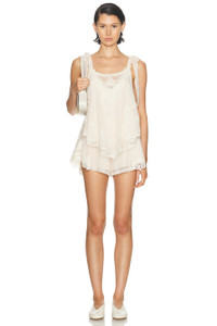 Details - Self: 77% cotton, 23% silk - Lining: 100% viscose - Lace 1: 100% polyester - Lace 2: 100% cotton - Made in China - Dry clean - Self-tie straps - Fully lined - Chiffon textile with eyelet and lace trim - Item not sold as set - Our Style No. ZMER-WS464 - Manufacturer Style No. 5582TRS261