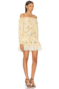 Cascadian off-the-shoulder lace-trimmed printed cotton-voile mini dress Cream