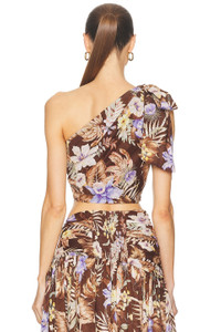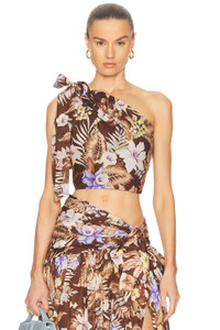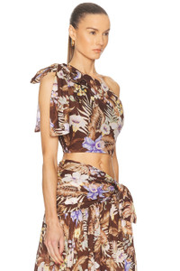 Details - 100% cotton - Dry clean only - Hidden side zipper closure - Tie-up detail at shoulder - One-shoulder design - Cropped fit - Poplin fabric - Item not sold as a set - Made in China - Our Style No. ZMER-WS448 - Manufacturer Style No. 3778TSS254