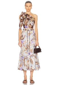 Details - 100% linen - Dry clean only - Unlined - Hidden back zipper closure - Beaded embellished belt at waist - Linen fabric with ruffle detail - Made in China - Our Style No. ZMER-WQ130 - Manufacturer Style No. 3489SSS254