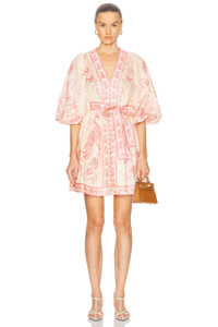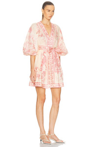 Details - Self: 100% linen - Lining: 100% cotton - Dry clean only - Partially lined - Hidden back zipper closure - Front button loop closure - Tonal self tie-up at waist - Side slit pockets - Elastic stretch at cuffs - Linen fabric - Made in China - Our Style No. ZMER-WD768 - Manufacturer Style No. 3500DSS252
