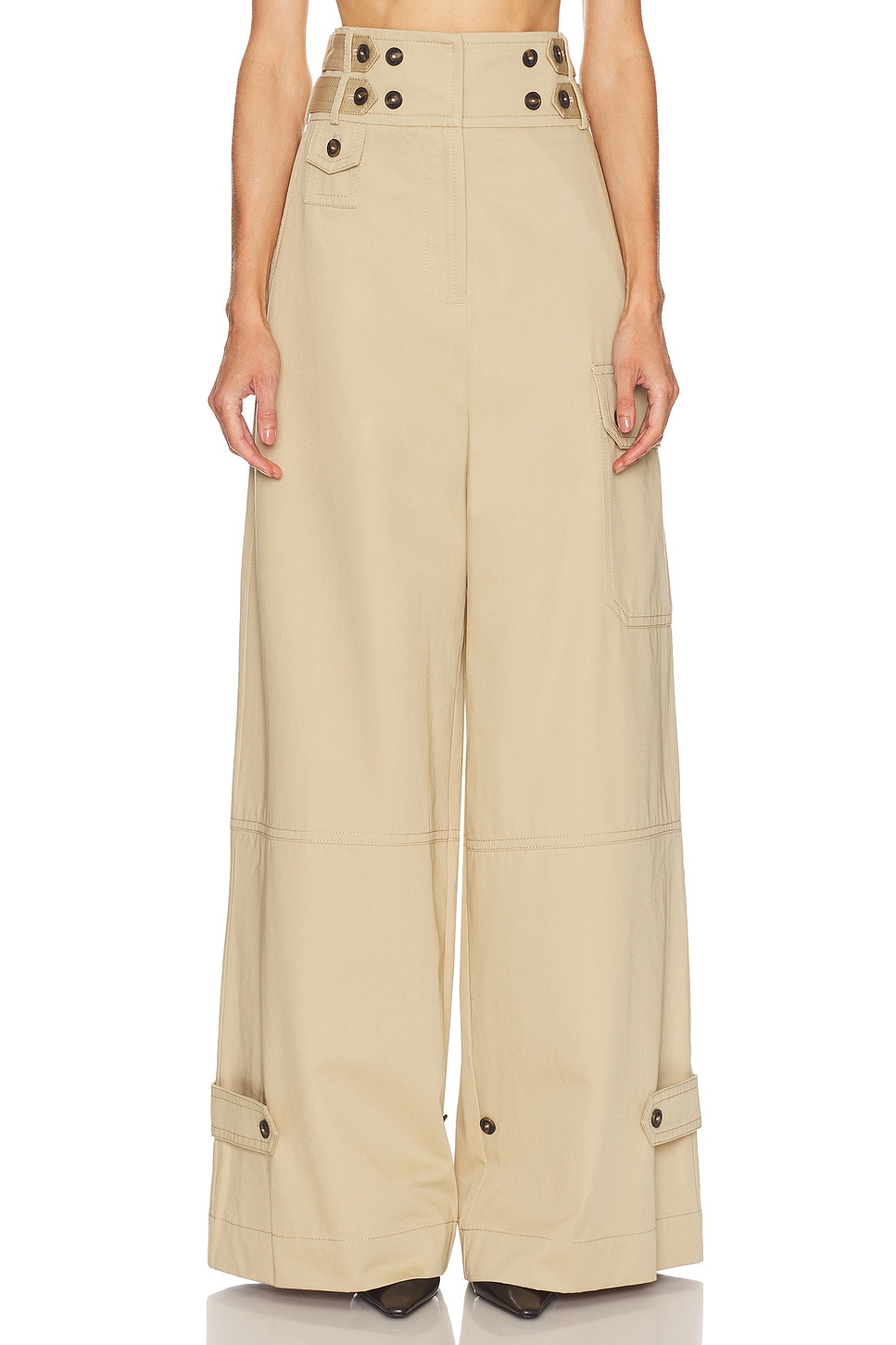 Details - 100% Cotton - Dry clean - Zipper fly with button and hook and bar closure - Side adjusters with button fastening at waist and ankles - Side slip pockets - Back slip pockets - Cargo pocket at left - Made in China - Our Style No. ZMER-WP70 - Manufacturer Style No. 6919PC261