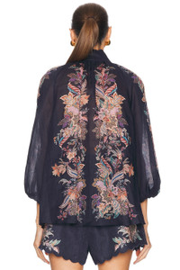 Details - Self: 100% ramie - Contrast Fabric: 100% polyester - Dry clean only - Front gold-tone button loop closure - Elasticized cuffs - Lightweight chiffon fabric - Item not sold as a set - Garment is made with a semi-sheer fabric, undergarments can show through - Made in China - Our Style No. ZMER-WS440 - Manufacturer Style No. 4273TSS251
