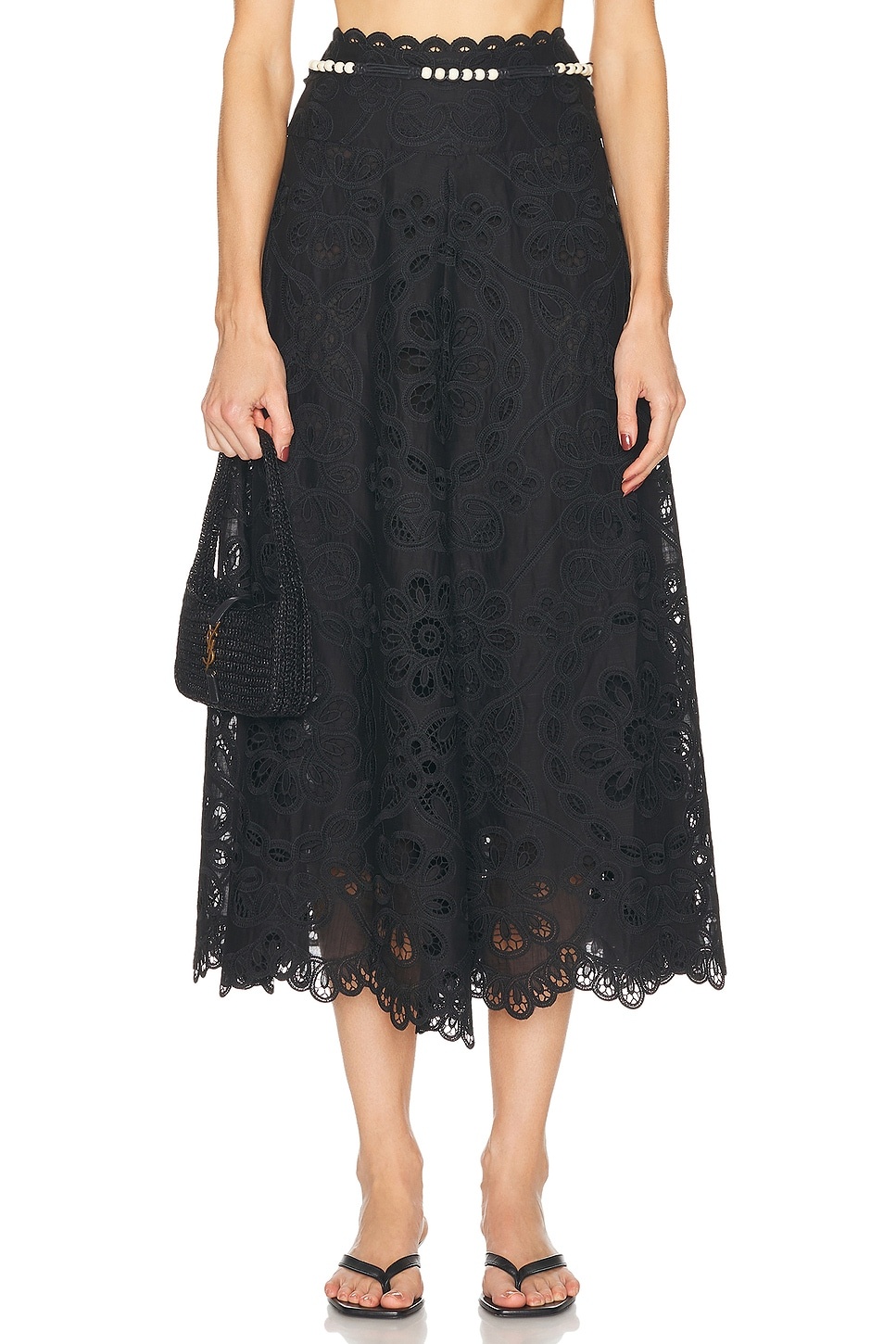 Details - Self 1 & Lining: 100% cotton - Self 2: 100% polyester - Dry clean only - Partially lined - Hidden back zipper closure - Beaded embellished belt at waist - High-waisted fit - Eyelet fabric - Item not sold as a set - Made in China - Our Style No. ZMER-WQ126 - Manufacturer Style No. 4248SSS251