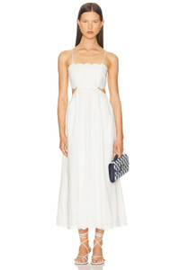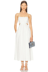 Rhiannon cutout pleated scalloped linen-voile midi dress Ivory