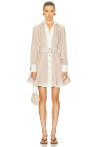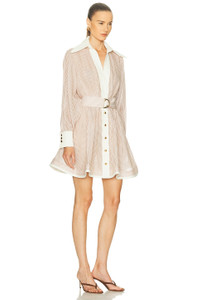 Details - Self: 85% cotton, 15% silk - Contrast Fabric: 100% cotton - Dry clean only - Unlined - Front gold-tone button closure - Detachable belt with gold-tone D-ring closure - Button cuffs - Heavyweight linen fabric - Garment is made with a semi-sheer fabric, undergarments can show through - Made in China - Our Style No. ZMER-WD786 - Manufacturer Style No. 1154DF251