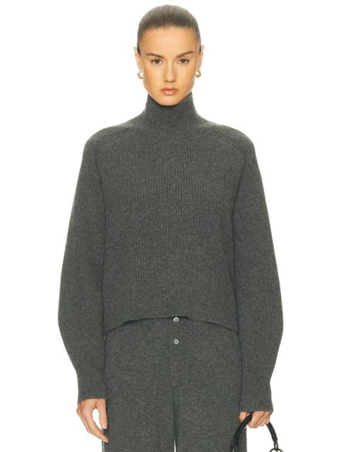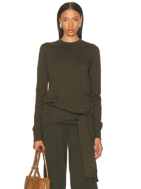 Cashmere Jersey Draped Long Sleeve Crewneck Top
