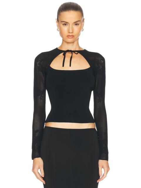 Lace Pointelle Knit Decolette Top