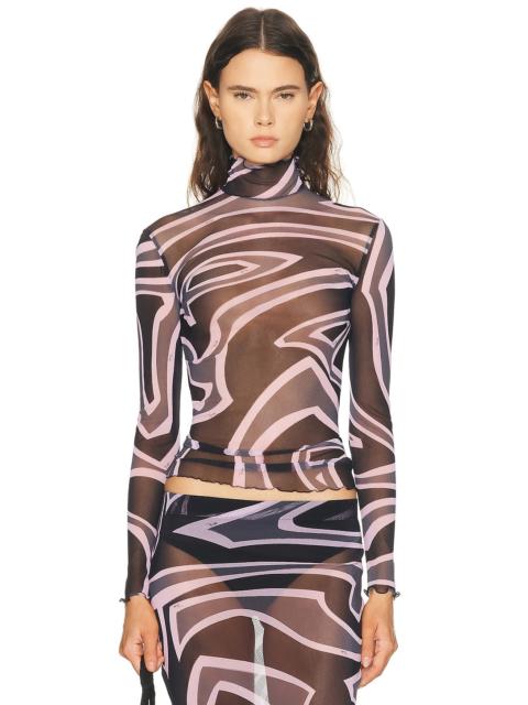 Cashmere Jersey Draped Long Sleeve Crewneck Top