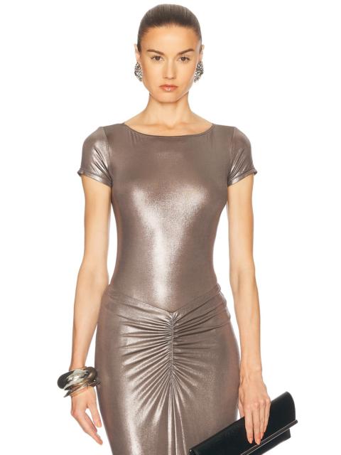 Coated Jersey Short Sleeve Mock Neck Bodysuit