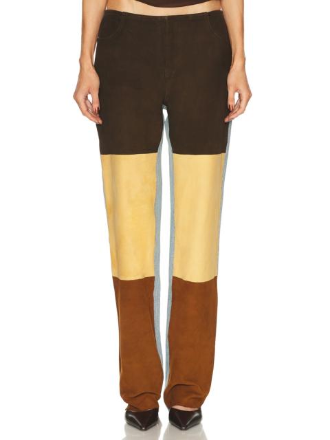 Spliced Suede Denim Straight Leg