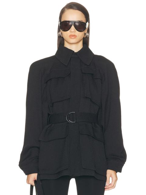 Long Sleeve Shoulder Pad V Neck Zip Front Jacket