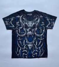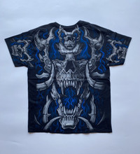 FANTASY-BLUE FLAME SKULL-OVERALL LARGE PRINT 2 Sided T-SHIRT