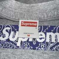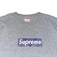 SUPREME 2001 Purple Paisley Box Logo tee In heather gray shirt Not your ordinary paisley/bandana box logo 🙃 Tagged as Medium Measurements (inches): 20" pit to pit 28" shoulder to hem Shipping through DHL Express ETA: 3-7 working days