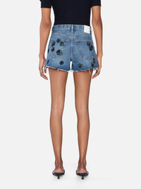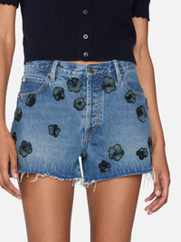 Our bestseller, Atelier edition. Hanging from a mid-rise waist to a mini hem with the perfect amount of coverage, this elevated iteration of The Hang Short features navy blue floral appliques and a signature white leather patch at the back. Finished by a raw hem for a vintage feel. Materials & Care Mid Rise Fit Dry Clean Only 100% Regenerative Cotton 10.5" Front Rise/3" Inseam/25.5" Leg Opening 4000EB210-JLET