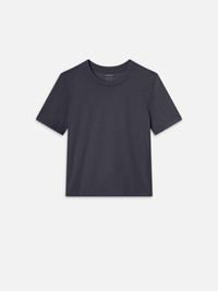 Crafted in indulgently soft and slightly sheer supima cotton, this baby tee is your go-to everyday t-shirt. Cut to a slightly shrunken fit, you can pair it with denim for a chic, fuss-free uniform. Materials & Care Machine Wash Cold 100% Supima Cotton 21.75" Long From Shoulder WS24JTE003-NAVY
