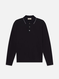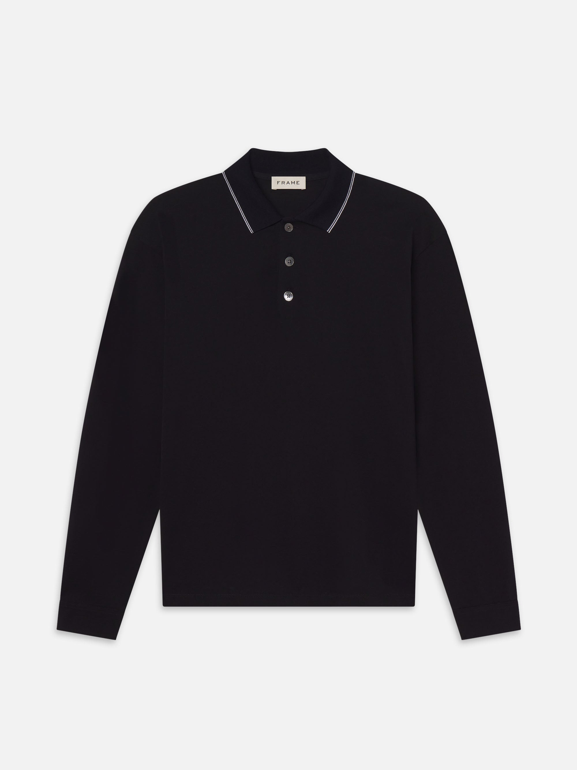 A long sleeve polo built for warmer months. Knit in a lightweight pique that breathes like a tee but carries the structure of a shirt, this elevated essential is finished with a tailored collar, clean cuffs, and a smooth handfeel. Ideal for office layering or solo wear off-duty. Materials & Care Machine Wash Cold 100% Mercerized Cotton 27.25" Long From Shoulder ME25JTE010-DKNV