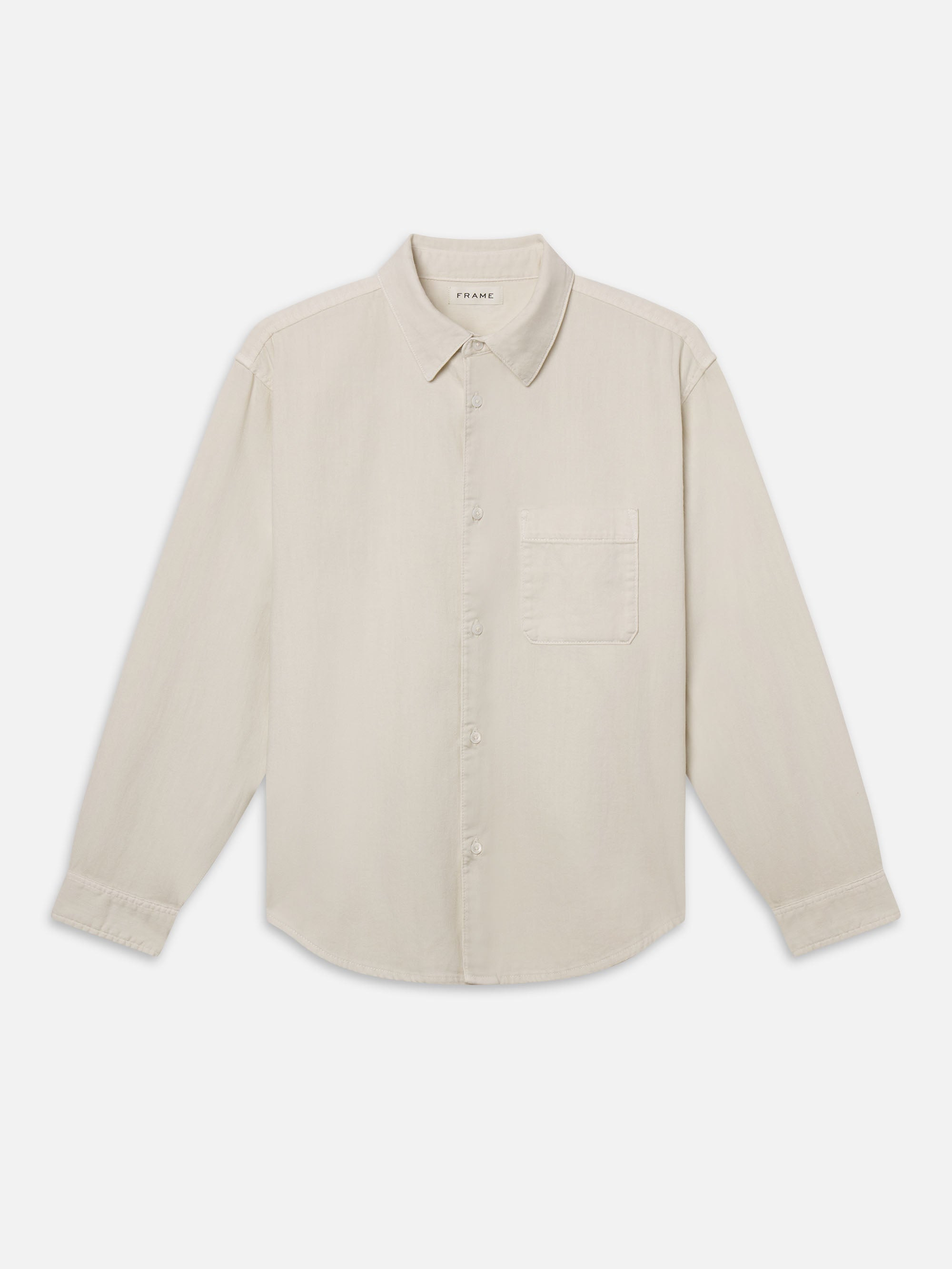 This sleek, smooth button down is crafted from 100% cotton in a light beige wash. With a front patch pocket, pearl grey buttons and classic curved hem. Materials & Care Machine Wash Cold 100% Cotton 29" Long From Shoulder M023DWT317-WRWH