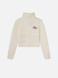 The definition of chic, this cashmere sweater features Ritz-engraved buttons that run along the cuffs and trace the shoulder-to-turtleneck line. Unbutton a few as you step from the snow to heated indoor dining. An embroidered moniker and twinned pockets complete the cozy design. Materials & Care Dry Clean Only 100% Cashmere 19" Long From Shoulder WP25KSW056-CREA