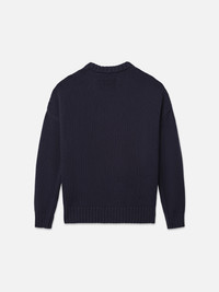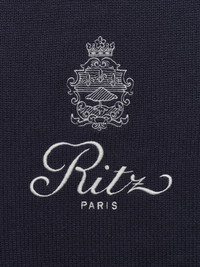 A luxuriously soft 100% cashmere knit done in classic crewneck style with extra attention to detail: ribbed cuffs and hem, an exaggerated neckline and drop shoulder for modern fit, and the Ritz Paris and FRAME logos embroidered in contrasting white thread, in homage to stylish hospitality and hospitable style. Each piece from the FRAME x Ritz Paris collaboration is crafted from luxe materials and designed to evoke the opulence and comfort of staying inside the world's most luxurious hotels. Materials & Care 100% Cashmere Dry Clean Only 25" Long From Shoulder LUSW0004-NAVY