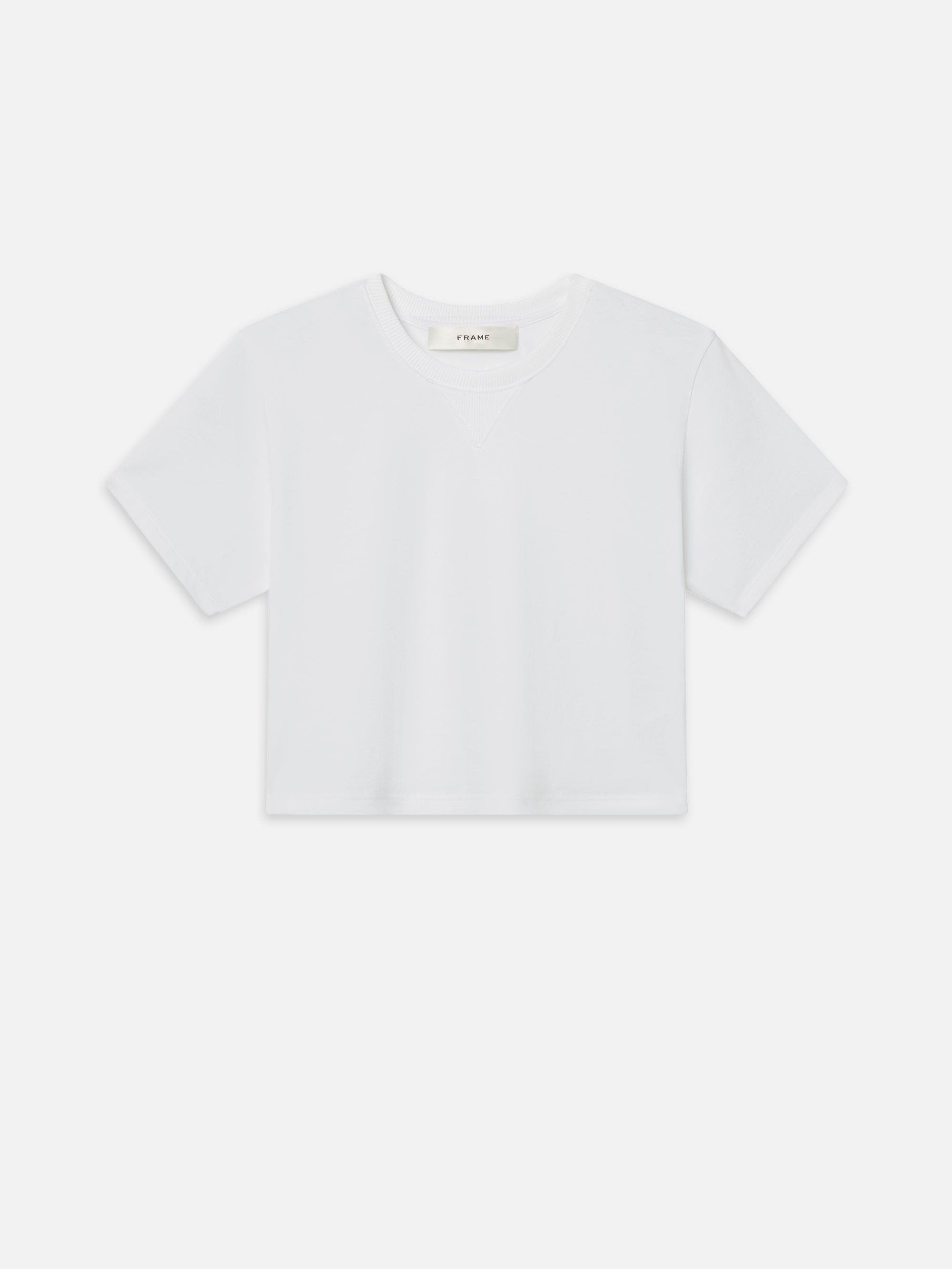 The everyday tee you’ll reach for again and again. Boxy and cropped in midweight organic cotton, designed to skim the waistband and finished with a classic V-insert detail that nods to vintage athleticwear. Materials & Care Machine Wash Cold 100% Organic Cotton 16.875" Long From Shoulder WF25JTE001-WHT
