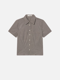 This poplin shirt bridges the seasons, with a Fall-ready brown colorway and a gingham print that nods to summer. Transitional, polished and effortless, with dual front patch pockets and a pointed collar. Materials & Care Dry Clean Only 100% Cotton 21.5" Long From Shoulder WF25WSH033-COFM