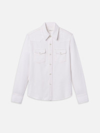 A classic rigid denim shirt with Western-inspired, pearl-finish snaps. Slim cut for a fitted look. DETAILS - Luxury denim made from 100% premium cotton conforms to your figure as it breaks in for a highly personal, incredibly flattering fit. - Machine Wash Cold - 61% Cotton/39% Lyocell - 26.25" Long From Shoulder - 7035182-AUCL