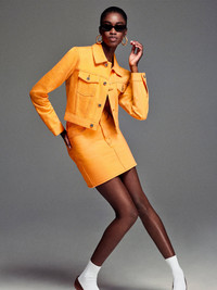 A piece from the Carolina Herrera x FRAME collab, The Corset Mini Skirt blends designer ready-to-wear and denim in more ways than one. Yards of pure cotton are pre-dyed, then sewn into a wide, cummerbund-like waist with gold buttons. A leather patch in the back is the finishing touch to the ultra saturated mini skirt Materials & Care High Rise Fit Machine Wash Cold 100% Cotton 18.0" Long From Waist/39" Leg Opening CH01DSK728-MRGD