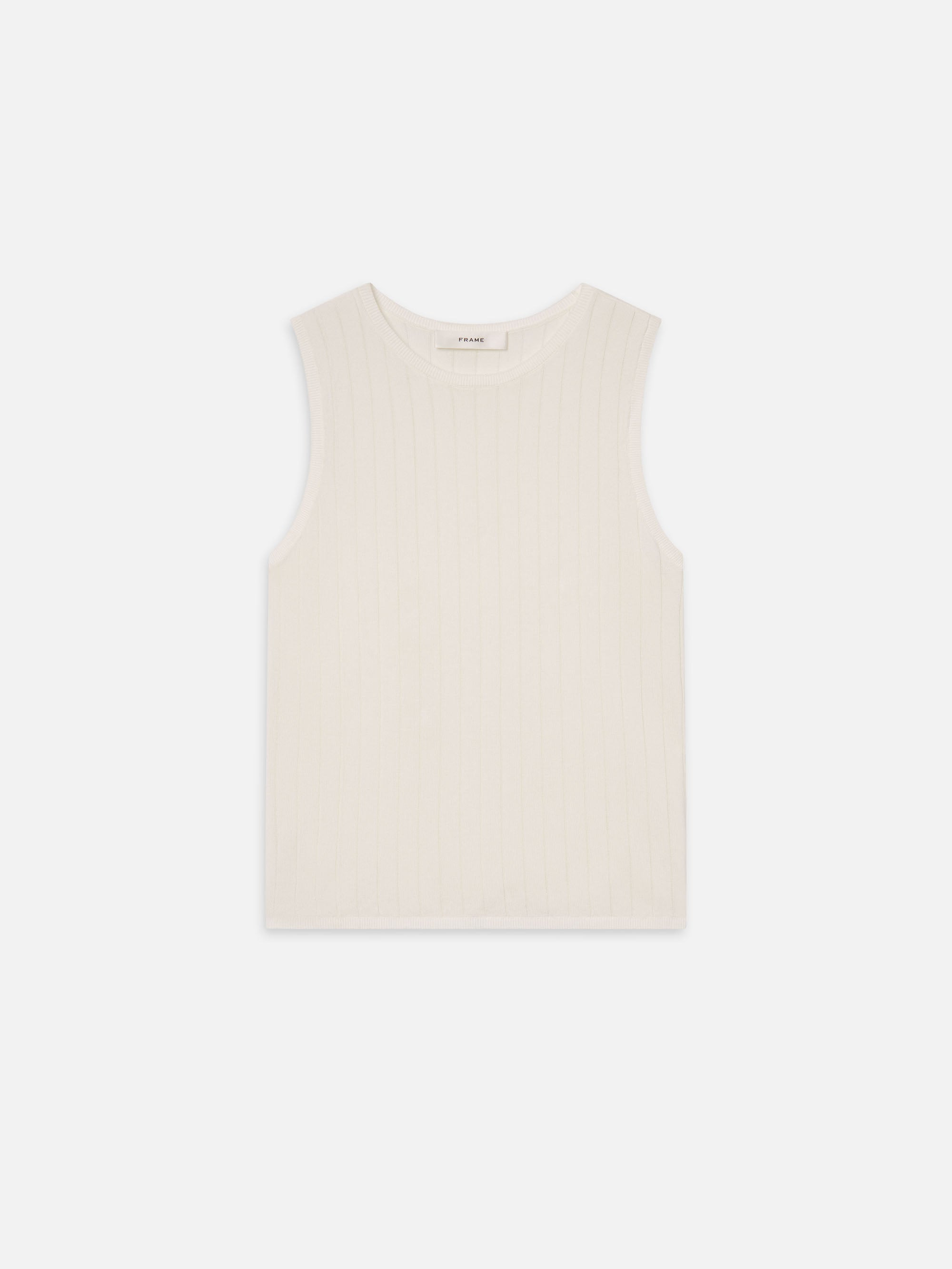 Crafted from an airy blend of paper (yes, really!) and silk. A breathable, semi-sheer knit tank with vertical ladder stitching and a full-length fit. Bra-friendly and easy to style with everything from denim to tailored trousers. Materials & Care Dry Clean Only 80% Paper/20% Silk 20.5" Long From Shoulder WF25KSW021-CREA