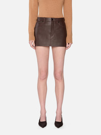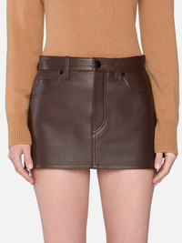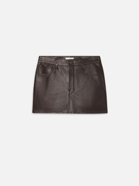 Crafted from 100% lamb leather in a rich dark brown, The Leather Mini Skirt is cut with clean lines and finished with a discreet side zip. Feminine in shape, it brings a quiet edge to summer's softer palette—especially paired with the matching Leather Cuffed Jacket. Materials & Care Mid Rise Fit Clean Professionally By A Leather And Suede Specialist 100% Leather 12.75" Long From Waist/41.5" Leg Opening WE25LSK002-DKBR