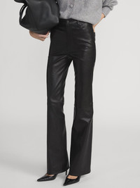 Our Reboot silhouette, reimagined in pure black lamb leather. Designed with a high-rise waist and full-length, bootcut leg. DETAILS - High Rise Fit - Clean Professionally By A Leather And Suede Specialist - 100% Lamb Leather - 11" Front Rise/33" Inseam/19" Leg Opening - WP26LPA005-BLK