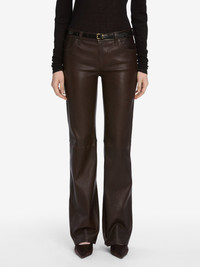 Our low-rise Rodeo silhouette, now in stretch lamb leather. Tailored for a slim fit, with a subtle bootcut and leg-lengthening 33" inseam. Materials & Care Low Rise Fit Clean Professionally By A Leather And Suede Specialist 100% Lamb Leather 9" Front Rise/33" Inseam/19.5" Leg Opening WF25LPA009-TRUF