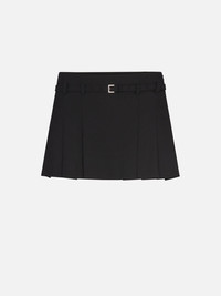 Tailored from suiting fabric with sharp pleats and FRAME's signature attached self-belt at the waist. A refined take on collegiate dressing—perfect with knee-high boots or a soft knit. Materials & Care Dry Clean Only 53% Polyester/43% Virgin Wool/4% Elastane WF25WSK004-BLK