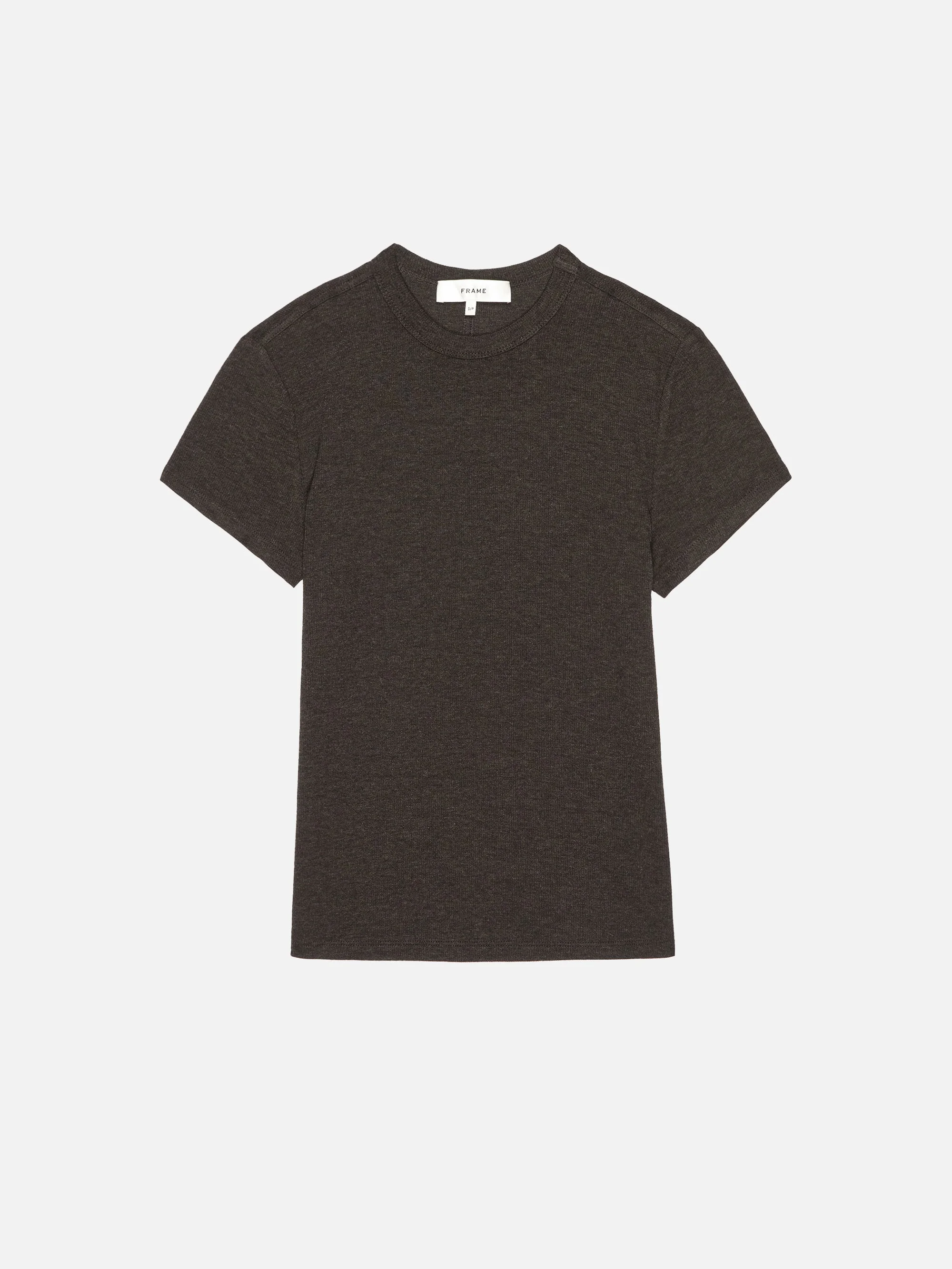 Soft and stretchy, this baby tee enhances your go-to everyday t-shirt with fine ribbed trim. Cut to a slightly shrunken fit, you can pair it with denim for a chic, fuss-free uniform. DETAILS - Hand Wash Cold - 96% Modal/4% Spandex - 21" Long From Shoulder - WF25JKT012-CFHT