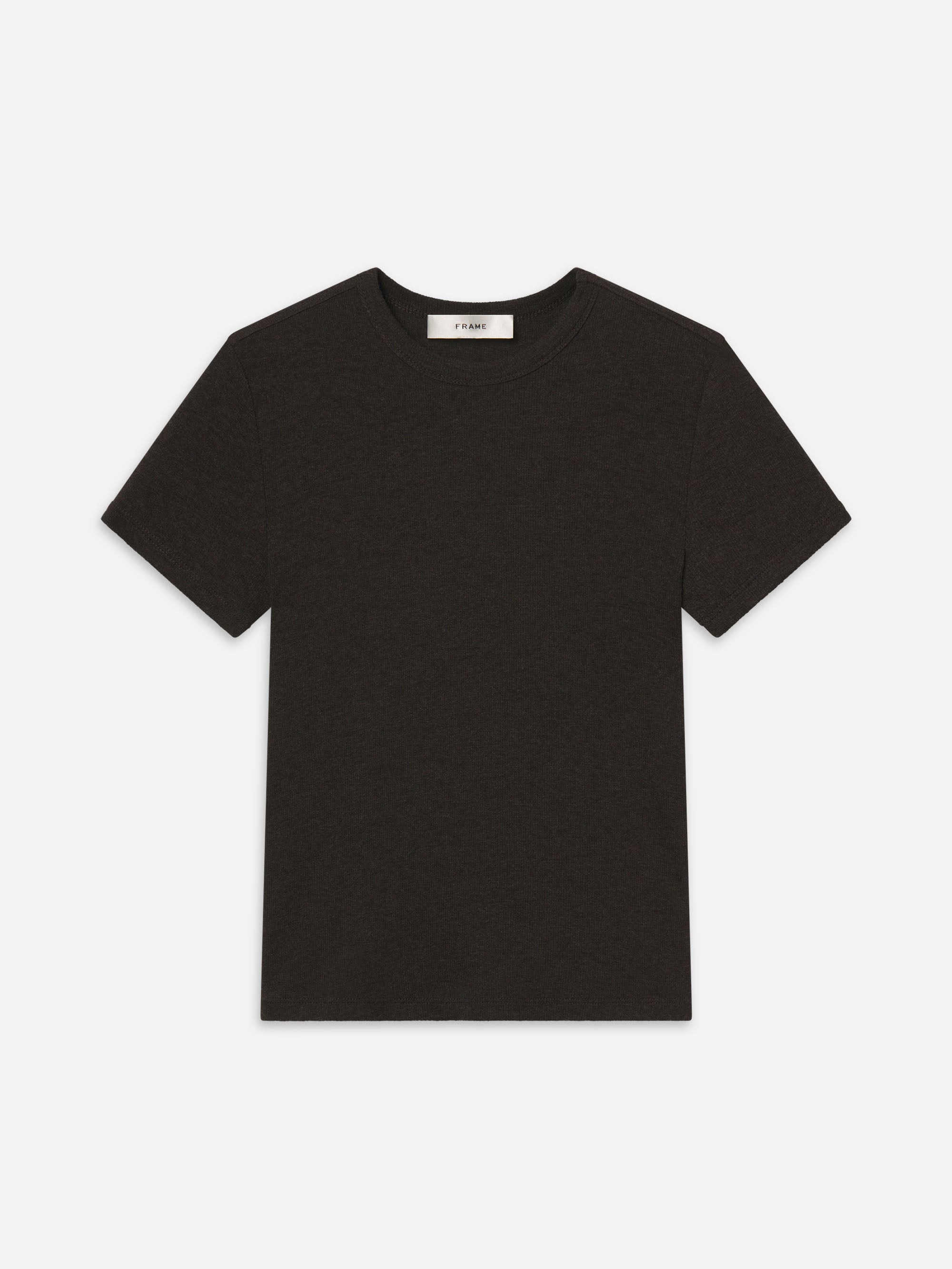 Soft and stretchy, this baby tee enhances your go-to everyday t-shirt with fine ribbed trim. Cut to a slightly shrunken fit, you can pair it with denim for a chic, fuss-free uniform. Materials & Care Hand Wash Cold 96% Modal/4% Spandex 21" Long From Shoulder WE24JKT015-CFFE