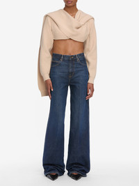 A cozy scarf gets sweater sleeves in this bold balletic silhouette. Drape it over both shoulders for a fresh, feminine look. It has no closures and can be knotted or draped in an array of gorgeous ways. Materials & Care Dry Clean Only 70% Wool/30% Cashmere 12.25" Long From Shoulder WF25KSW031-PKSD