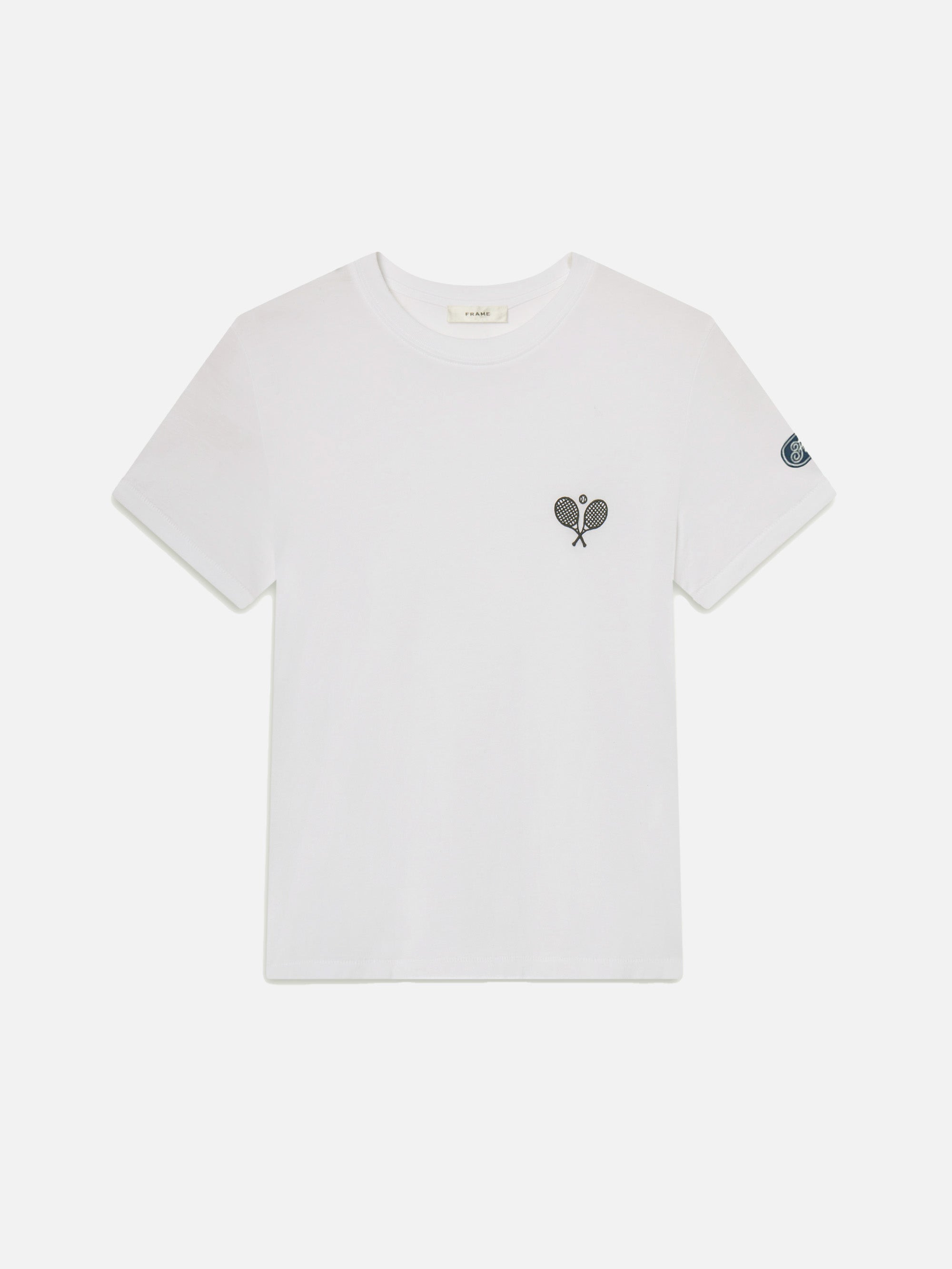 From our Tennis Capsule, this classic shrunken tee features embroidered tennis rackets at the chest. A wink to heritage style, rendered in soft, breathable cotton. Materials & Care Machine Wash Cold 100% Cotton 21.25" Long From Shoulder WF25JTE012-WHT