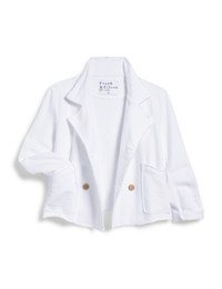 Our Belfast Sweatshirt Peacoat was love at first sight! This mini, everyday version has all the best parts of the original—luxurious horn buttons, scrunchable sleeves, and a statement collar — with the cutest cropped fit! - Notched lapels - Double-breasted horn buttons - Roomy patch pockets - Long easy-to-scrunch sleeves - Milan is 5'9" with a 33" bust wearing a size S - This style was made using a small batch garment-dye process, giving each piece a unique look that will evolve and fade over time - Style Code: LABCROP-WHT FABRIC + CARE - A soft, lightly combed three-yarn knit that looks luxurious—yet feels just like your favorite sweatshirt. - 100% Cotton. Cotton comes from the U.S. and Brazil, is spun in the U.S. and Korea, finished in the U.S. - We recommend washing separately in cold water before the first wear to prevent any color transfer. After that, machine wash cold with like colors and tumble dry low. - Learn more in our Fabric Guide.
