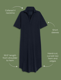 Inspired by our best-selling Popover Henley, Emma is the preppy, short-sleeve maxi dress every closet needs. Ridiculously versatile, with beloved details like our signature raw edge hem and flattering v-neck, this easy dress is the ultimate throw-on-and-go piece. - Hand-cut raw hem and edges - Collared V neckline - Short sleeves - Pullover design with no closure - Milan is 5'9" with a 33" bust wearing a size S - 50.5" length from shoulder to hem - This style was made using a small batch garment-dye process, giving each piece a unique look that will evolve and fade over time - Style Code: LAB457HJ-BRNV FABRIC + CARE - This durable, open-end yarn is lightweight, breathable, and feels like your favorite vintage tee. - 100% Cotton, made in the U.S. from seed to finish. Cotton is grown in the Delta region, spun into yarn in North Carolina, then knitted and crafted into garments in LA. - We recommend washing separately in cold water before the first wear to prevent any color transfer. After that, machine wash cold with like colors and tumble dry low. - Learn more in our Fabric Guide.